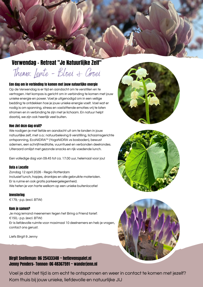 Zondag 12 april - Verwendag (Retreat) "Je Natuurlijke Zelf"